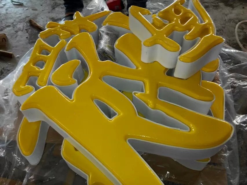 制作工藝根據(jù)制作方案,開吸塑專用模具。通常尺寸在2.5mx2.5m以內(nèi)的發(fā)光字可使用3mm白亞克力板,采用分段拼接,起鼓高度2.2-3cm。尺寸在2.5mx2.5m以上的發(fā)光字建議使用5mm厚亞克力板,起鼓高度2-3cm